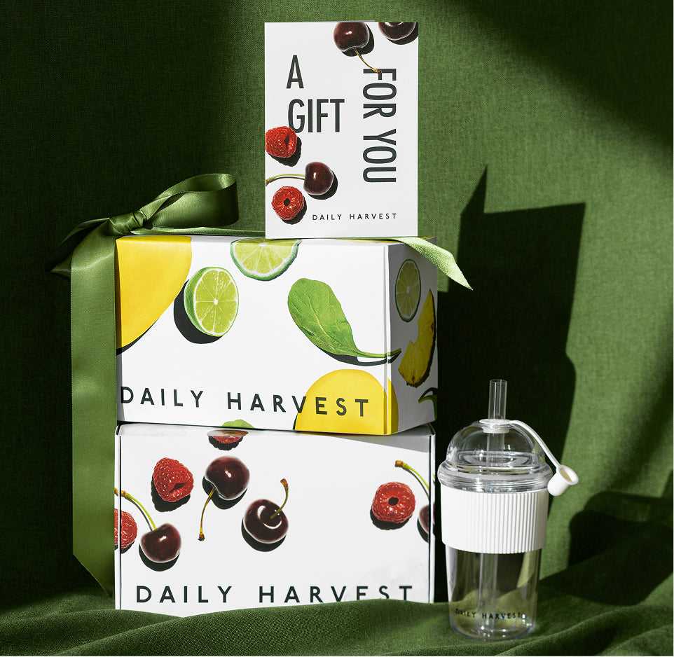 In a sea of unhealthy holiday treats, Daily Harvest’s real food is a real gift. We’re a no-prep, no-mess delicious solution for eating healthily—meaning we can help someone find balance, get nourished and build an easy, healthy routine.When you give Daily Harvest, you give the gift of ease, comfort, and health. Our gift cards can be redeemed on our smoothie gift boxes, new subscription orders or current subscription orders.
