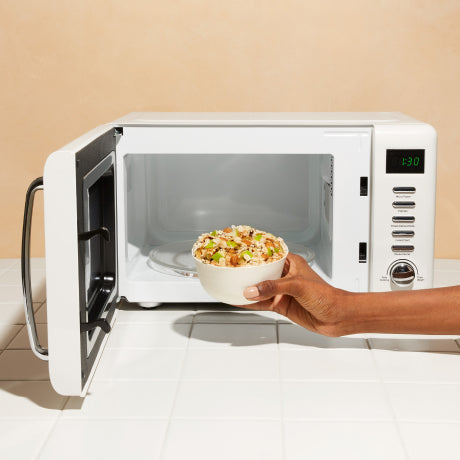 - 1 Remove film. For microwave, cook in this bowl or transfer to any microwave safe bowl of your choice. Add 1/4 cup of your preferred milk. Heat on high for 1-2 minutes. Stir. Heat for 1 additional minutes.